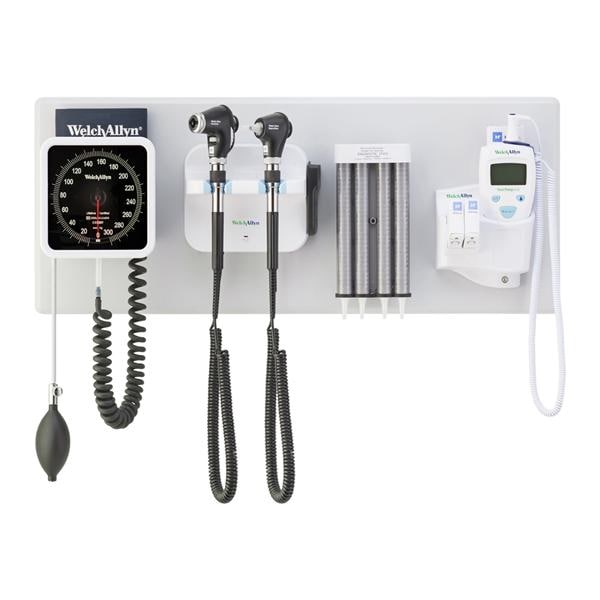 Welch Allyn Green Series 777 Integrated Wall System with PanOptic Basic LED Ophthalmoscope, MacroView Basic LED Otoscope, BP Aneroid, Ear Specula Dispenser, and SureTemp Plus Thermometer